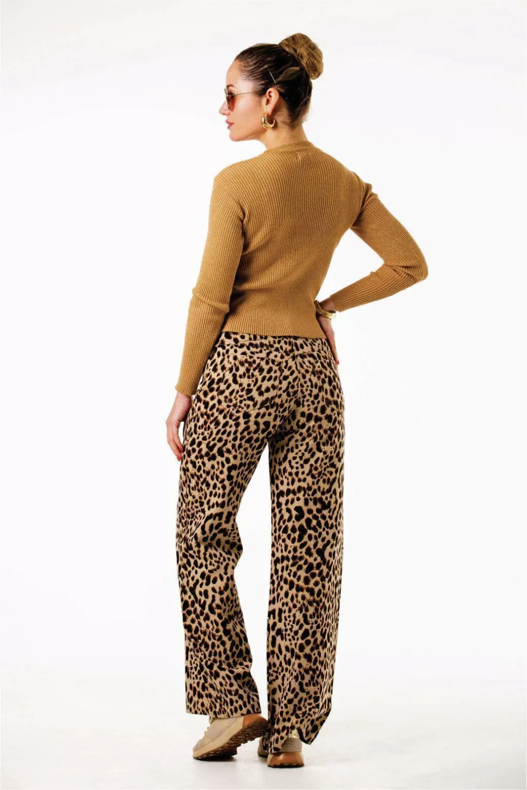 PANTALÓN DE GABARDINA ESTAMPADA ANIMAL PRINT. EL ESTAMPADO DE LA TEMPORADA QUE ES MEGA TENDENCIA APLICADO EN UN PANTALÓN DE CALCE INCREIBLE CON BOLSILLOS TRASERO Y TIRO ALTO MEDIO. CUENTA CON UNA BOTAMANGA AMPLIA Y PODES ARMAR UN CONJUNTO COMBINANDOLO CON NUESTRO BUZO DALIA. LLEVATE EL CONJUNTO PARA TENER UN LOOK RESUELTO PARA EL DIA DIA.